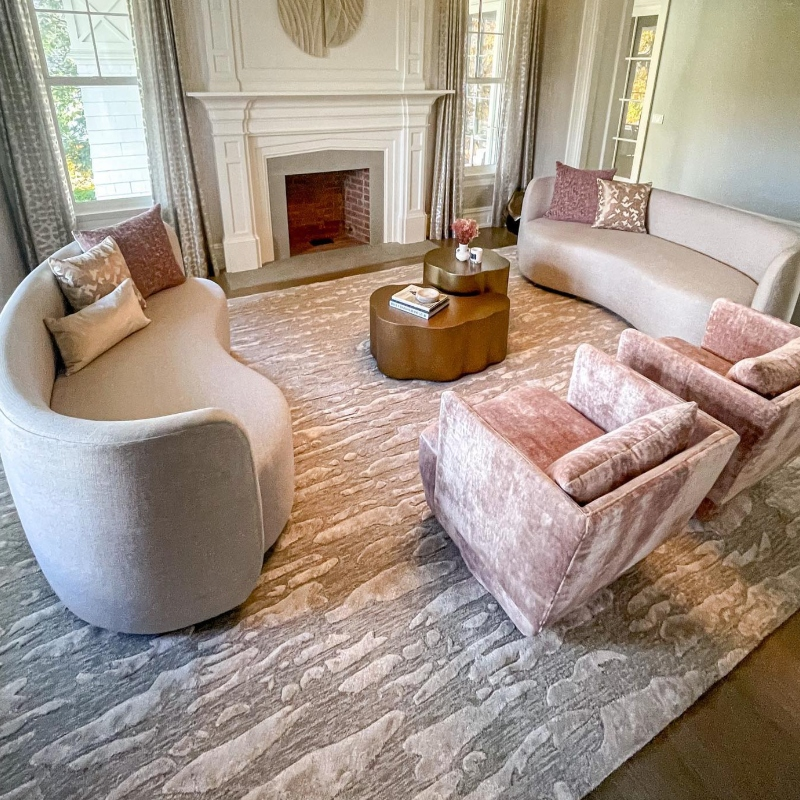 Handmade custom carpets should be cleaned with care so as not to damage or stress the carpet’s fibers. We suggest cleaning your rug with a delicate solution of warm soapy water, and blotting, never rubbing to remove any stains. We also suggest vacuuming your carpet every 1-2 weeks. To ensure the longevity of your handmade carpet, do not vacuum using a strong suction, a beater brush, or other aggressive vacuum attachments.